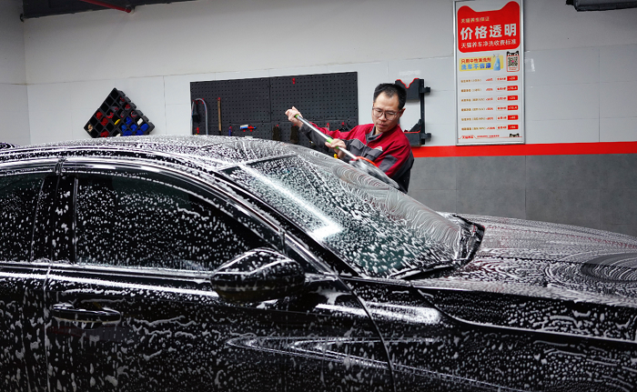 得益于天猫养车的品牌吸引力和流量扶持,天猫养车公交胜利路店开业起就颇具人气。“每天下午4点到6点,是门店最忙碌的时间段,附近的上班族都会来洗车、保养。”蒋震林介绍称,进店车辆中,70%的用户被天猫养车门头吸引而来,中高端车型占比超过60%。