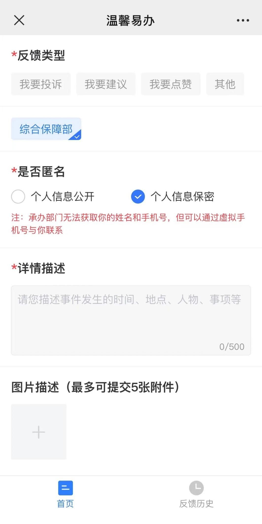 提交信息后,点击“反馈历史”可以查看处理进度。处理完毕后请支持完成评价。